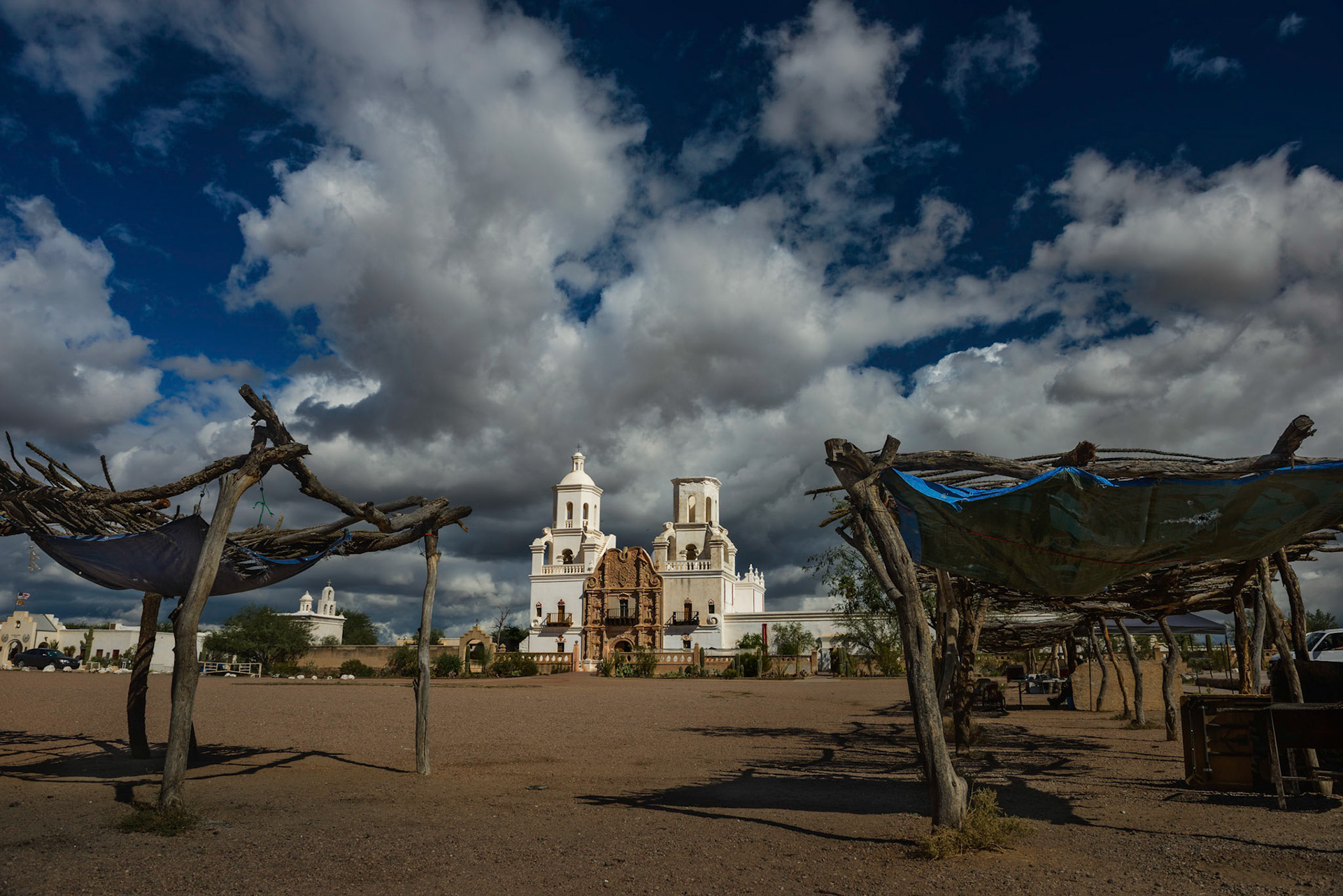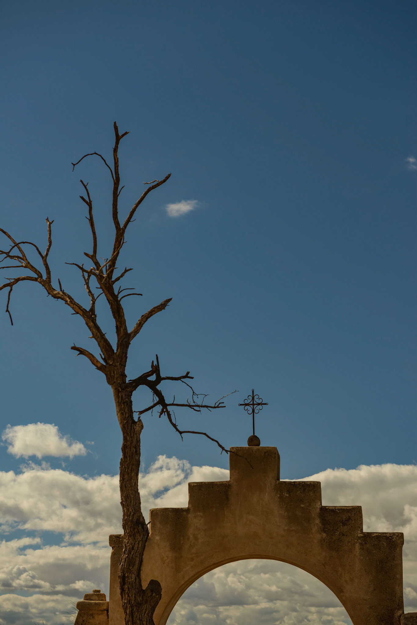 . Mission San Xavier del Bac September 23 // 10:26AM San Xavier Reservation // Arizona . I was in the area because I wanted to make some images of the Saguaro cactuses in the area. I pictured them standing tall against a sunset like I'd seen so many times before. Though, the images I leave with are rarely the ones I go in search of. . It was rounding mid-day and I had a rough shooting session at sunrise, I just wasn't able to make a composition. I was tired and feeling a bit down about the failure that morning. I decided to try to make some images of something completely different. . I landed at the doors of Mission San Xavier del Bac, a 225 year old Spanish Catholic Mission location just outside of Tucson. . The architecture was quintessential Spanish. The lines were clean and the long history was apparent as I walked around the property. The white stucco of the mission sat against the puffy clouds in the sky and it was a perfect, dramatic mix. As I walked out, I grabbed this shot of the arch that leads into the courtyard. It really brings you back to the old west and the way things were here 200 years ago.